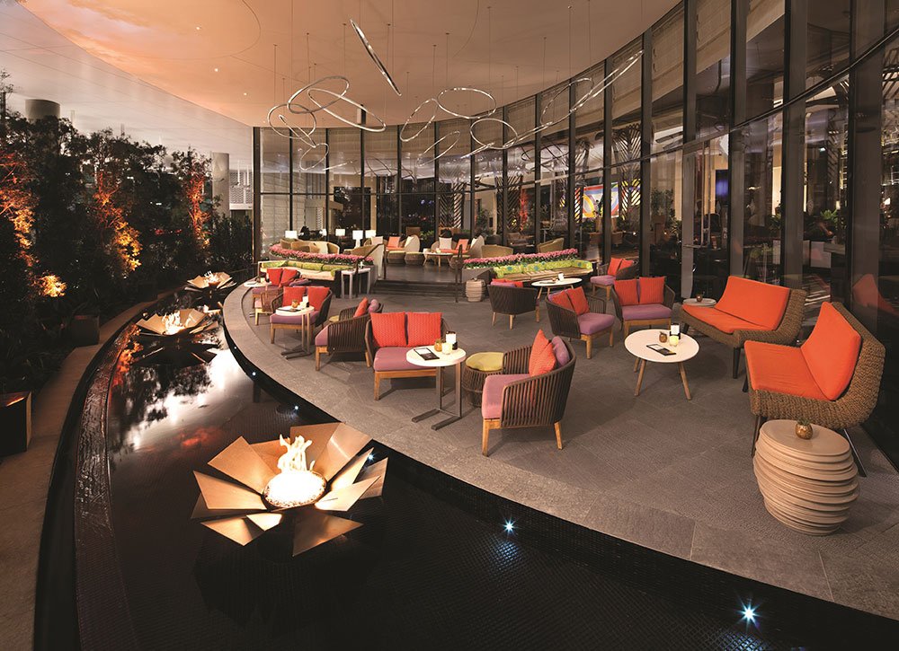 En cuanto se entra al área de la piscina y el lounge pareciera que se transmite un sentimiento de relajación inmediata, que está muy relacionado con el ambiente rodeado de un diseño de vanguardia. En esa área se encuentran el bar y lounge de una manera muy céntrica para recargar baterías y seguir participando en otras actividades.